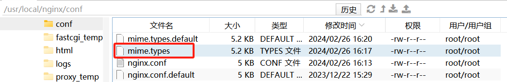 nginx在你的mime.types文件(不同版本位置可能不同)中设置MIMI类型(添加第二张图圈起来的部分)